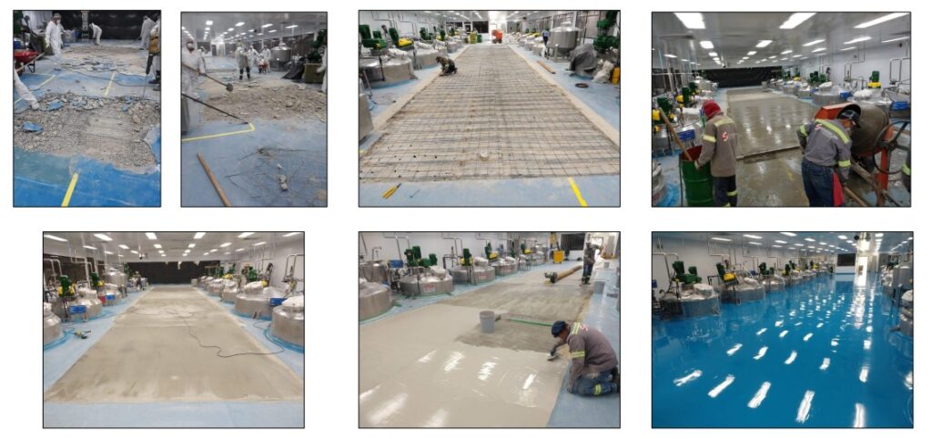 Demolición y Construcción Piso Zona Vaselina + Acabado Epoxico Johnson & Johnson – Yumbo